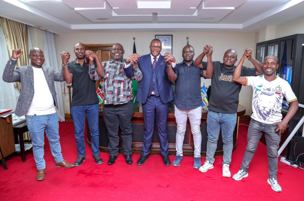 The team present included Chairman Paul Ochar, who led the discussions; 1st Vice-Chairman Fredrick Omondi; Secretary Kennedy Awino; Treasurer Dickson Odhiambo; and Organizing Secretary Peter Ouma Odhiambo. Additionally, Gor Mahia FC Treasurer Gerphas Okuku was also in attendance.